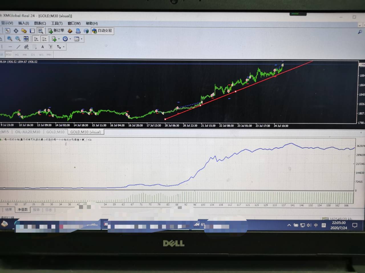 同样的策略的两个账户一个始终坚持全自动交易,资金增长不大,但面对这段时间黄金剧烈波动的行情还能从容应对,至少做到不亏。另一个账号,却因为加入人工操作,人为干预,人性的弱点赌一把,侥幸,幻想,最关键的是还不做止损。最终爆仓成了结局。应了那句话,不作死就不会死。虽然爆掉的是利润,但因犯了低级错误而爆掉未免可惜。当做教训吧,想好的策略坚持执行。