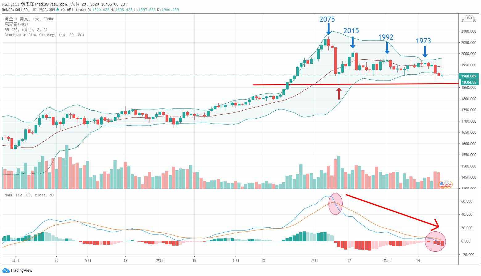 黄金价格从1955回落,跌至1882喘定后小幅反弹。