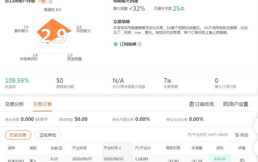 我的信号账户全部开放免费订阅一个月,让订阅者真实验证跟单的是否盈利。订阅者请按比例手数跟单,否则会亏损。不能接受浮亏和回撤的,请不要订阅。我的账户(https://www.followme.com/u/357...)参赛,在轻量组1250个账户中,排名150;同交易商排名36。