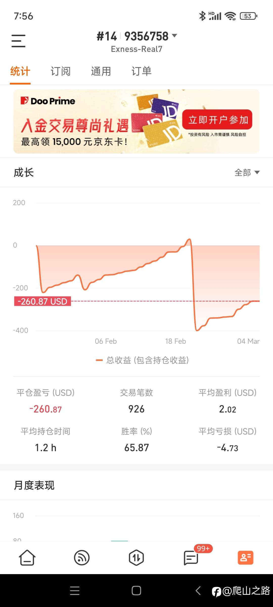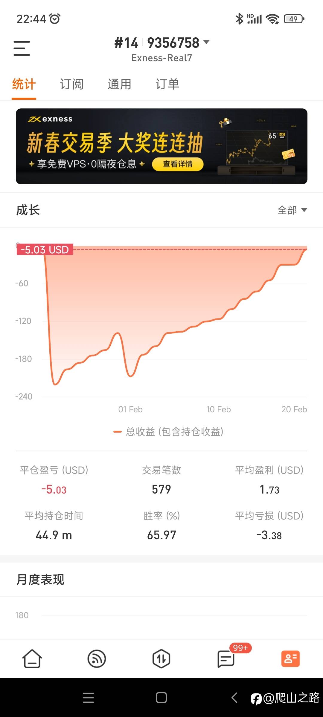 用EX在社区。统计吃大亏啊。返佣到账户的,佣金,统计差距太大了😂 风险提示:本文所述仅代表作者个人观点,不代表 Followme 的官方立场。Followme 不对内容的准确性、完整性或可靠性作出任何保证,对于基于该内容所采取的任何行为,不承担任何责任,除非另有书面明确说明。