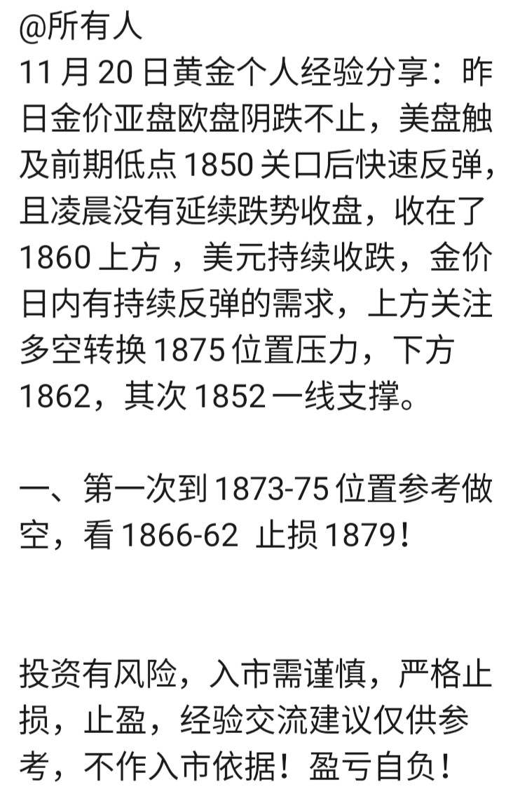 分享个策略#XAU/USD# 风险提示:本文所述仅代表作者个人观点,不代表 Followme 的官方立场。Followme 不对内容的准确性、完整性或可靠性作出任何保证,对于基于该内容所采取的任何行为,不承担任何责任,除非另有书面明确说明。