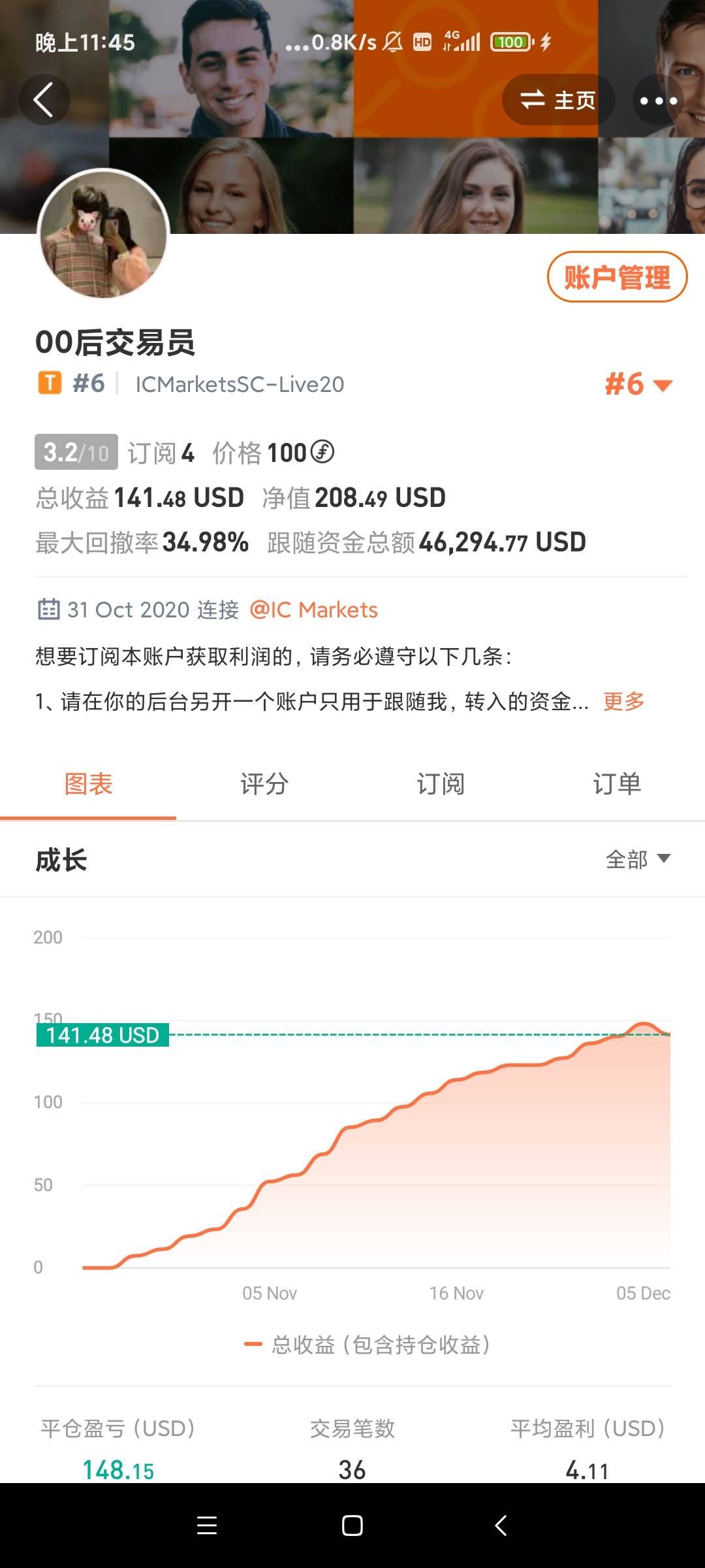 想要跟随我账户的,请务必遵守以下几条:1、请在你的后台另开一个账户只用于跟随我,转入的资金不要低于150美金(并按每150美金/0.01配置手数);2、请往后每周末出金盈利部分的30%;(计划第一步,把本金出了;计划第二步,盈利本金的数倍利润);3、本账户只做GBPCAD震荡区间,出了震荡将面临第一次止损(爆仓),请做好心理准备!
