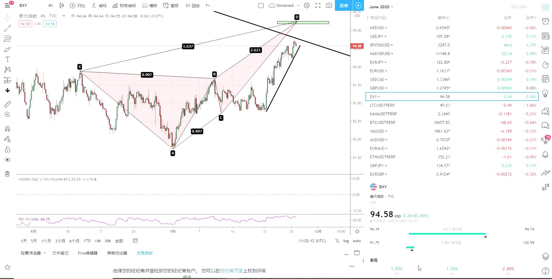 #和谐交易法# 美指完成1414蝴蝶,反转中