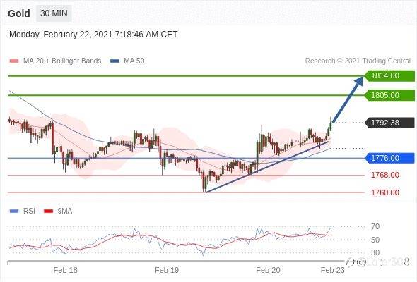 在1.2075之上,为多头信号,向上的目标位为1.2105。