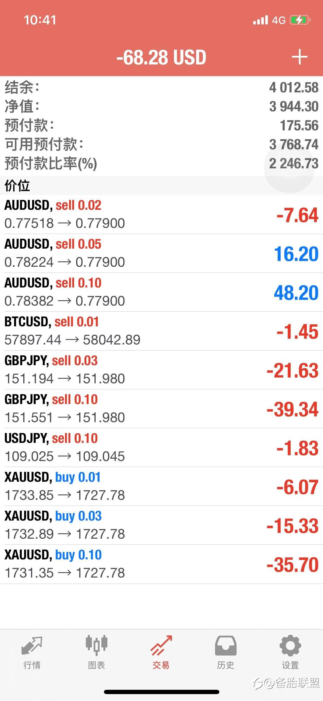 备胎联盟:小资金本周盈利400%本金1000usd。大资金本金2万usd一个多月差不多2个月了目前接近9W。我年初的时候说过目标80万rmb。不服来战。带上你的实盘。挂金十就好了。不会再给观摩!给你们单子还黑我。真的某些人不配。我这个车很稳欢迎上车。 风险提示:本文所述仅代表作者个人观点,不代表 Followme 的官方立场。Followme 不对内容的准确性、完整性或可靠性作出任何保证,对于基于该内容所采取的任何行为,不承担任何责任,除非另有书面明确说明。