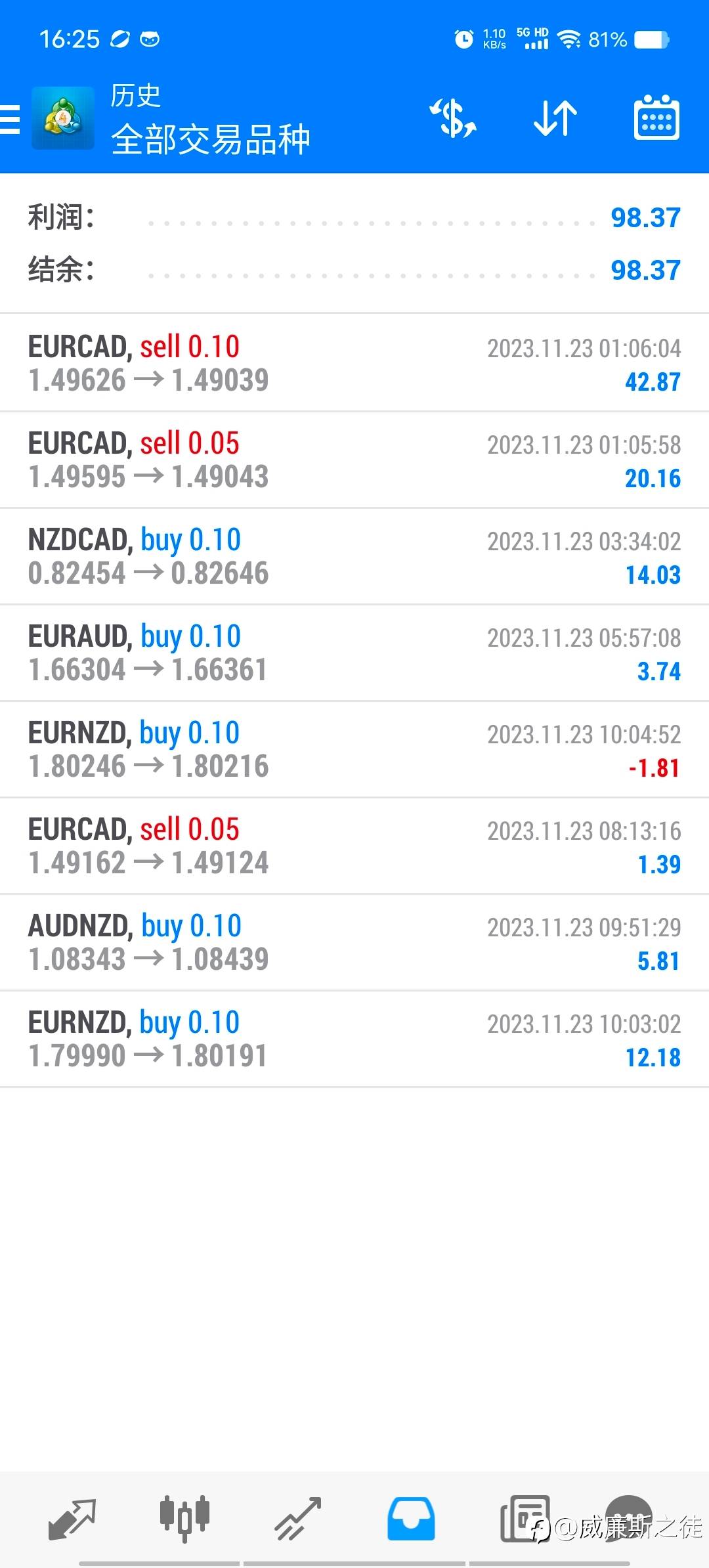 做交叉货币的第二天,从昨天到今天有了两百美金的利润,这点利润做黄金或者原油可能一天就能损没,做交叉货币一次止损了就是五六十美金,够连续止损三次的。连续损三次概率太小了。2017年以前做股票,17年开始做外汇。18年的时候就用这种方法,1000美金一月基本上赚八九百美金。一个朋友要跟着做,做了一段时间会看网上的分析了,每天看网上的大神分析黄金头头是道,什么点位开单,能到什么点位。我也看到了200美金一个月做到7000多美金的,看到4美金止损交易,一周赚三四十美金的。从那时起,就走上了一条不归路。连续亏损三年多。其实看到几百美金一月做到几千美金的那都是幸存者偏差。做黄金更多的是为了和别人谈论交流。我现在把目标定低一点一周赚三百美金,更多的是找回曾经交易的感觉。