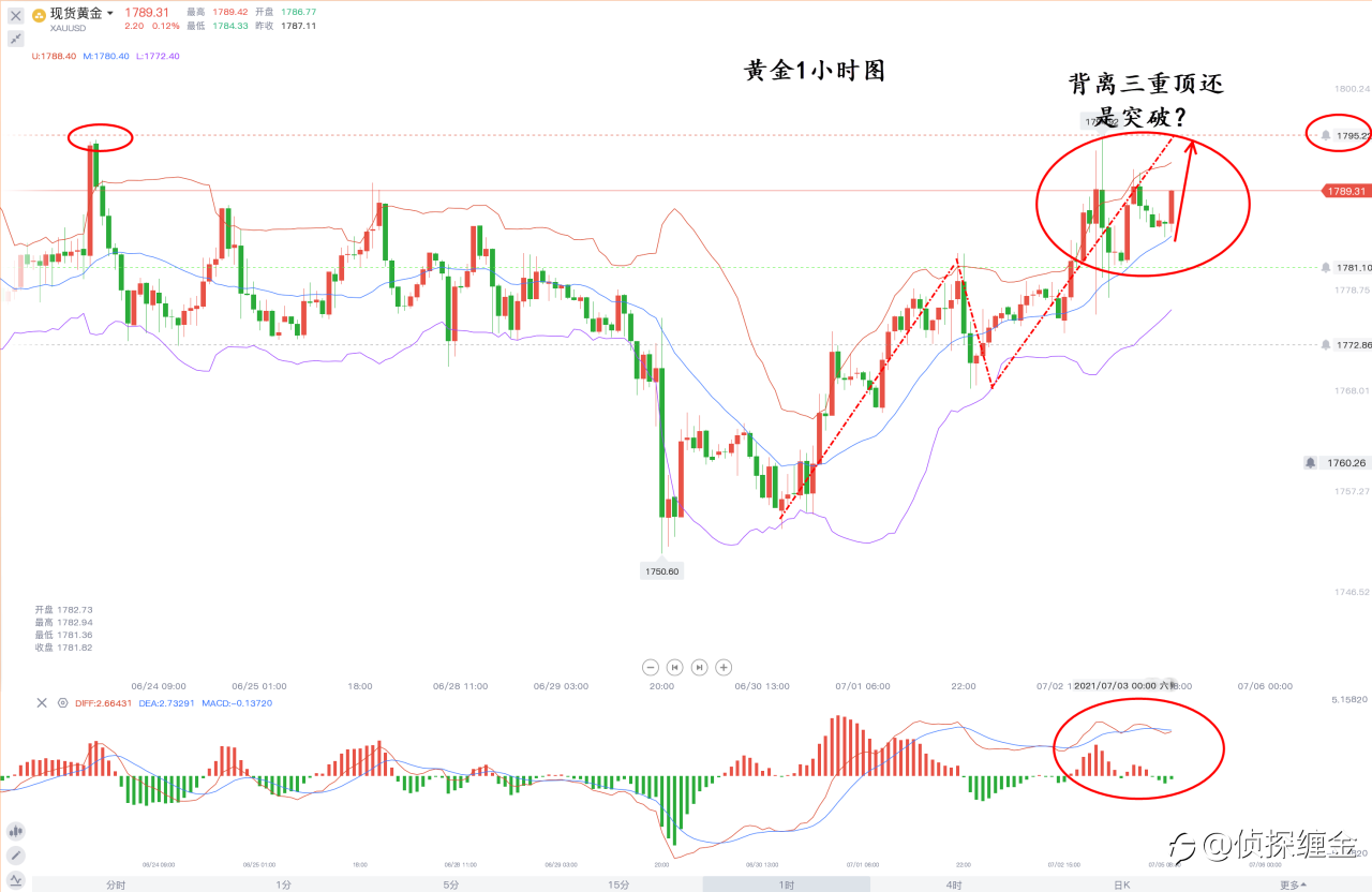 侦探缠金:黄金短线仍是震荡,日线上至少还有一跌!