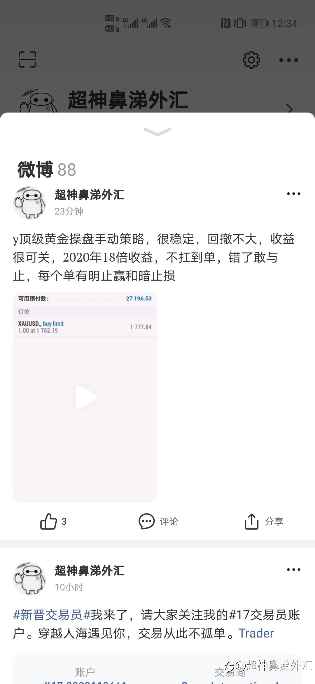 今日会增加两份策略账号,cemx 1万美金做到3万美金账号,tickmill手动黄金账号,请期待 风险提示:本文所述仅代表作者个人观点,不代表 Followme 的官方立场。Followme 不对内容的准确性、完整性或可靠性作出任何保证,对于基于该内容所采取的任何行为,不承担任何责任,除非另有书面明确说明。