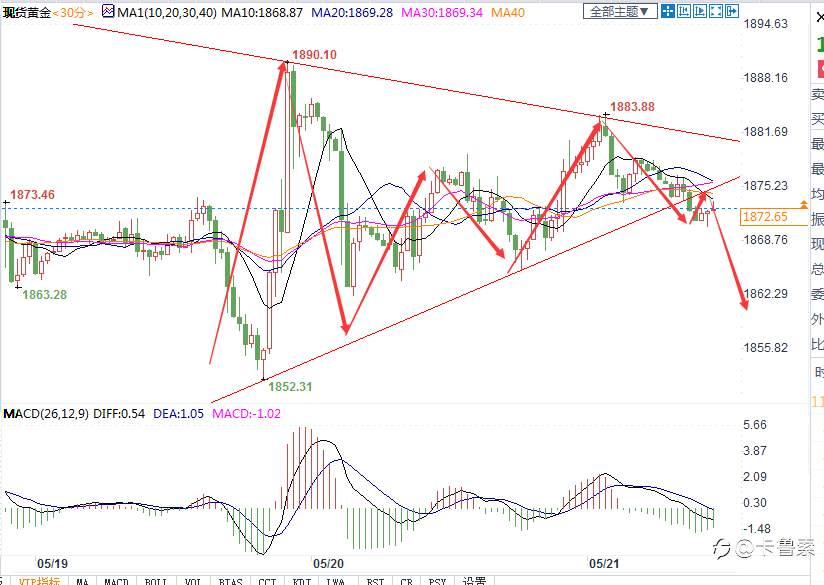 今日1874-75做空 止损1882 目标1863(破位看1853-45)