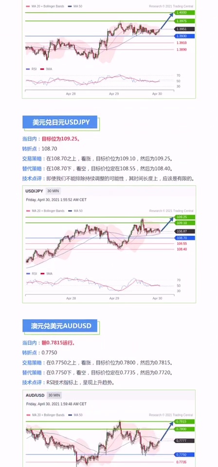 今日Trading Central早评,内含TC主流产品市场分析,仅供大家参考。