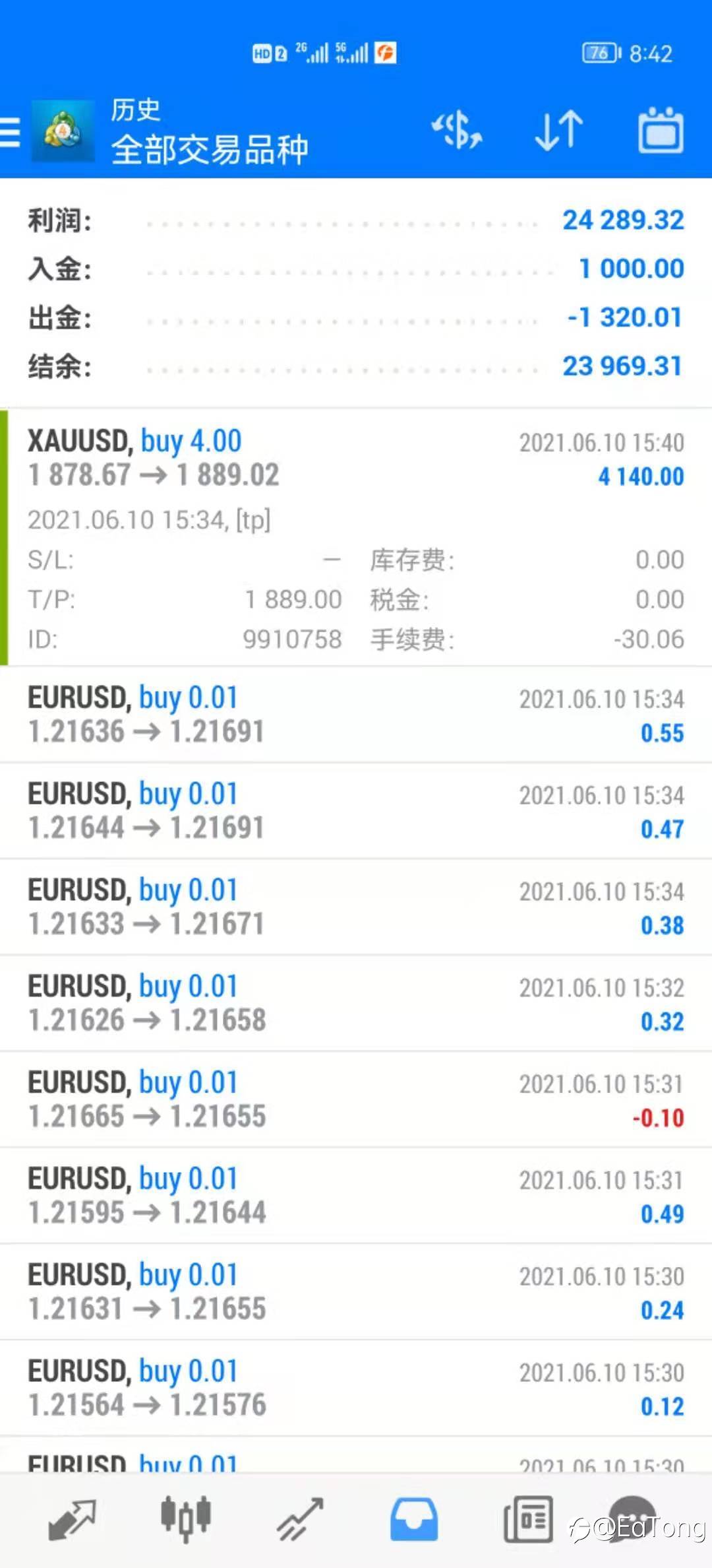 #EUR/USD#欧美定制ea 全自动 人工不干预 无需多言 每天稳定一包华子 稳步前行#XAU/USD# 风险提示:本文所述仅代表作者个人观点,不代表 Followme 的官方立场。Followme 不对内容的准确性、完整性或可靠性作出任何保证,对于基于该内容所采取的任何行为,不承担任何责任,除非另有书面明确说明。