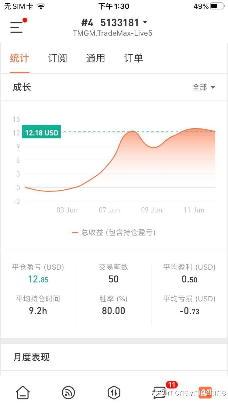 今天亏了4块。不然我就12%了😤 已编辑 09 Jun 2021, 23:52 风险提示:本文所述仅代表作者个人观点,不代表 Followme 的官方立场。Followme 不对内容的准确性、完整性或可靠性作出任何保证,对于基于该内容所采取的任何行为,不承担任何责任,除非另有书面明确说明。