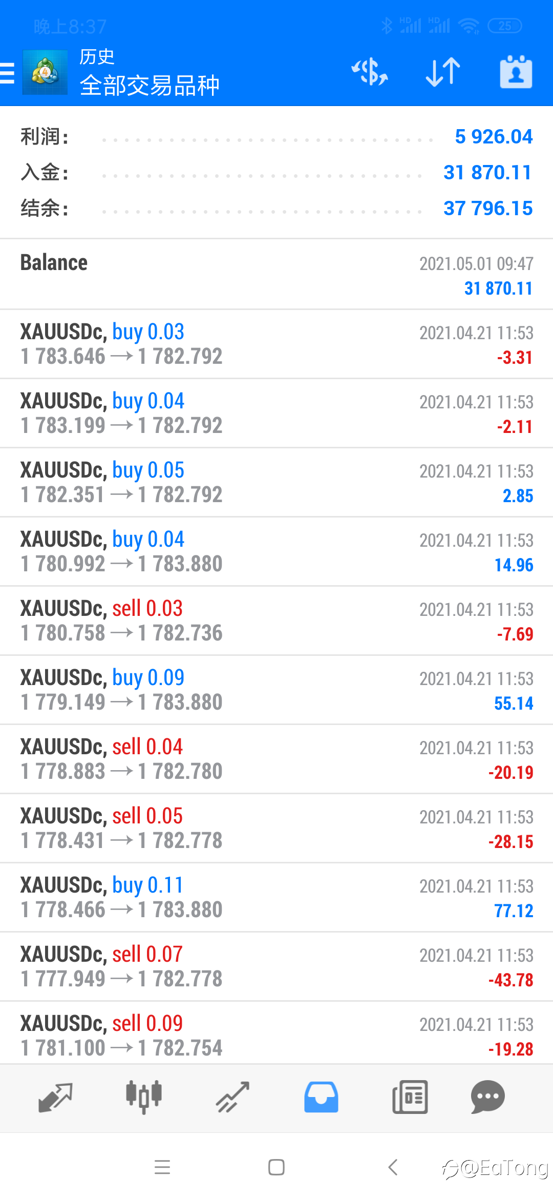 #XAU/USD#ea加手工,洗洗睡了,10天2400%,目标达成💪 风险提示:本文所述仅代表作者个人观点,不代表 Followme 的官方立场。Followme 不对内容的准确性、完整性或可靠性作出任何保证,对于基于该内容所采取的任何行为,不承担任何责任,除非另有书面明确说明。