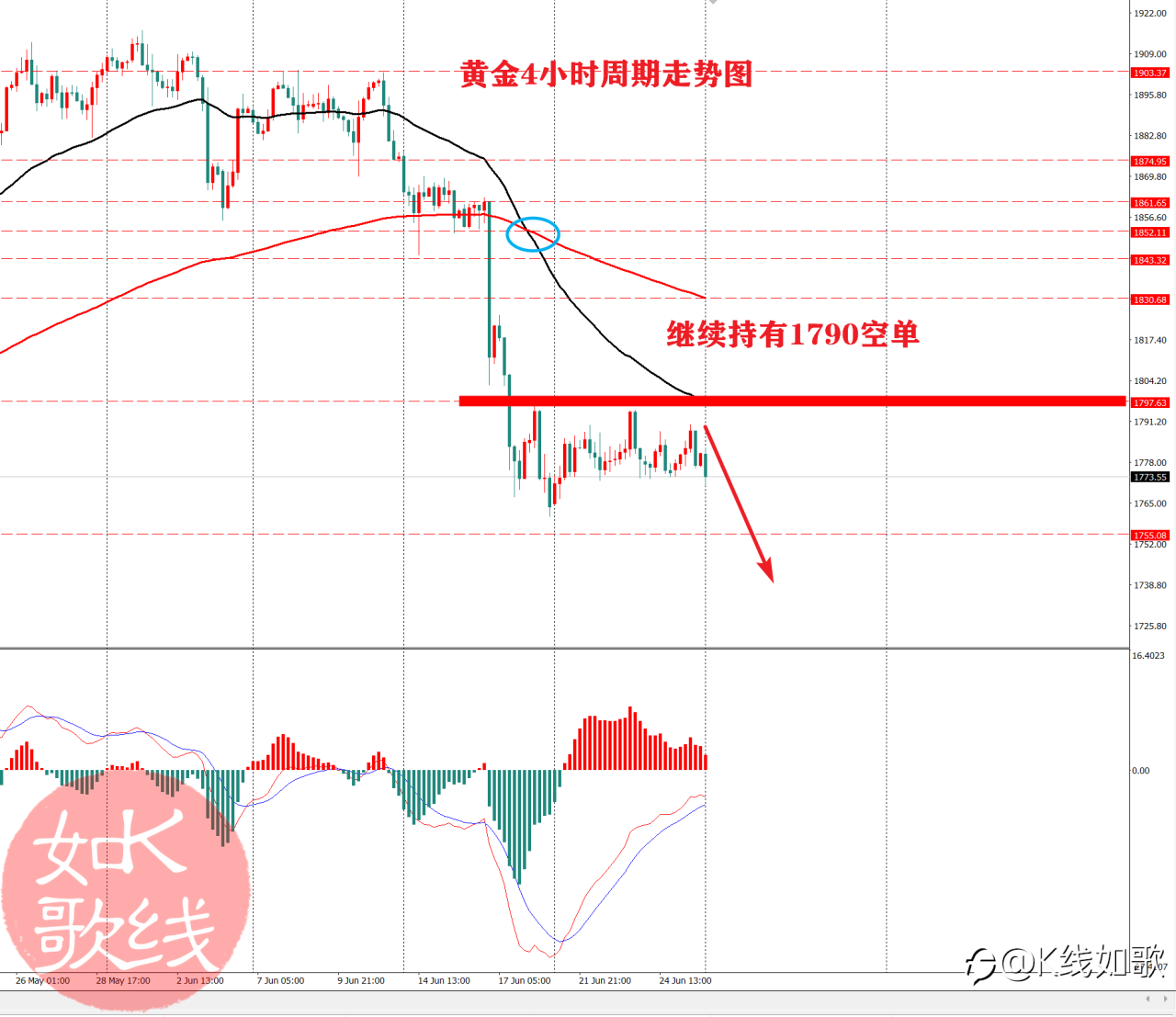 黄金昨日提示了反弹1790上果断空,虽然最低跌至1772一线,但相较于波段来说,只是毛毛雨!我们空单依旧继续持有中,今日如果行情再次反弹见1790上方,没有空的仍可继续空,如果见1800,则可以加仓空!