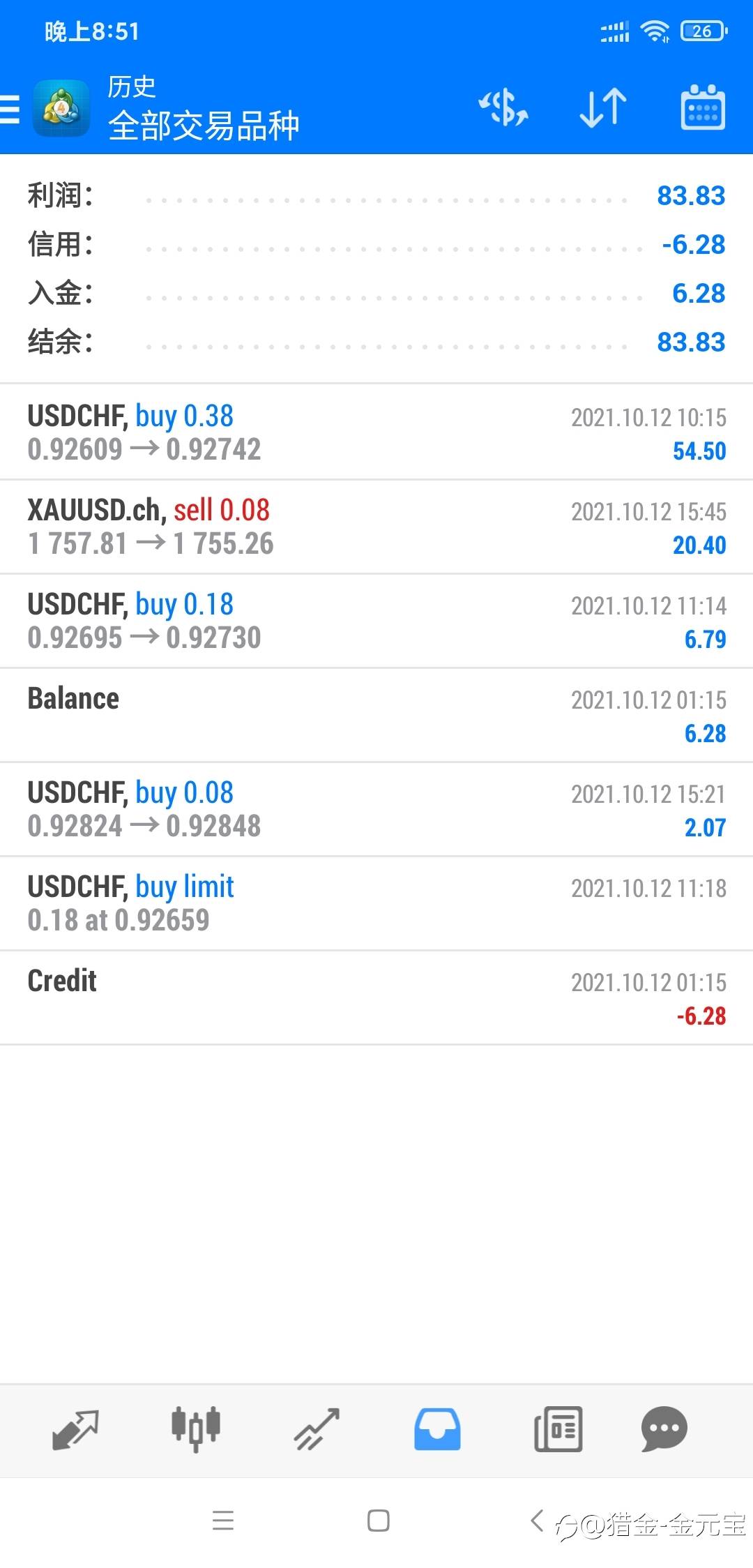 四个月前,第一次接触外汇,入金3000$,这笔钱在计划中本来就是学费,亏多亏少不用在乎,只要学到技术,比什么都强。当时计划亏完这笔钱,再入5000$,这5000在计划中只能亏3000,用这些钱熟悉外汇市场,了解规则,然后剩下2000捞本。如果5000全部亏完。证明我不适合这个市场,老老实实回我的股市,闷声炒中长线。3000$炒剩800$时,已经总结的差不多了,然后慢慢盈利,用两个月时间从800变成2500。看上去好像很不错,其实还没有入门,没有爆过仓,没有深度审视自己和外汇市场。这个月回本1045$,希望再接再厉,成为优秀的顶级操盘手。流水不争先,争的是滔滔不绝,不看一时,谁最终在这个残酷的市场中活下来,谁才有资格成为王者。