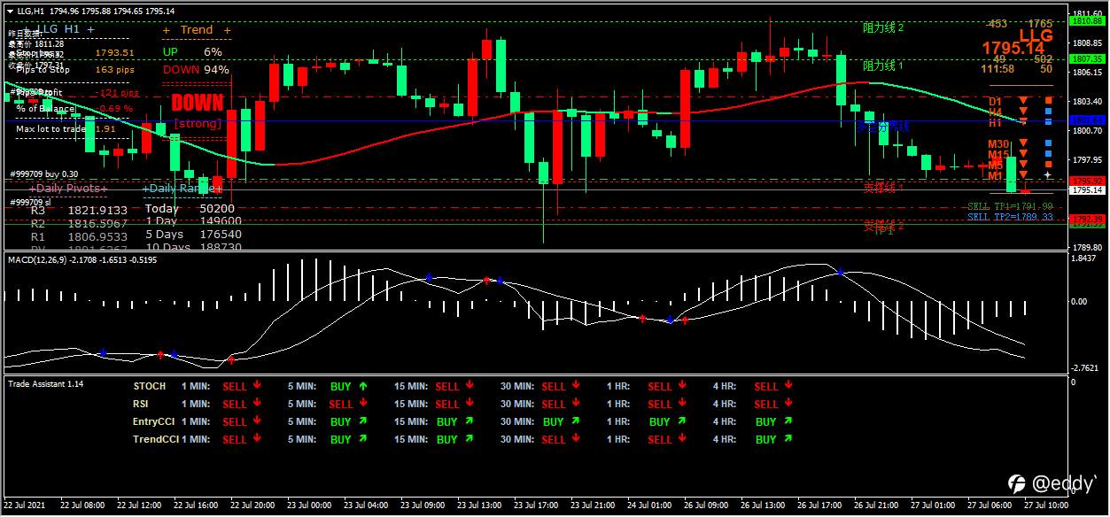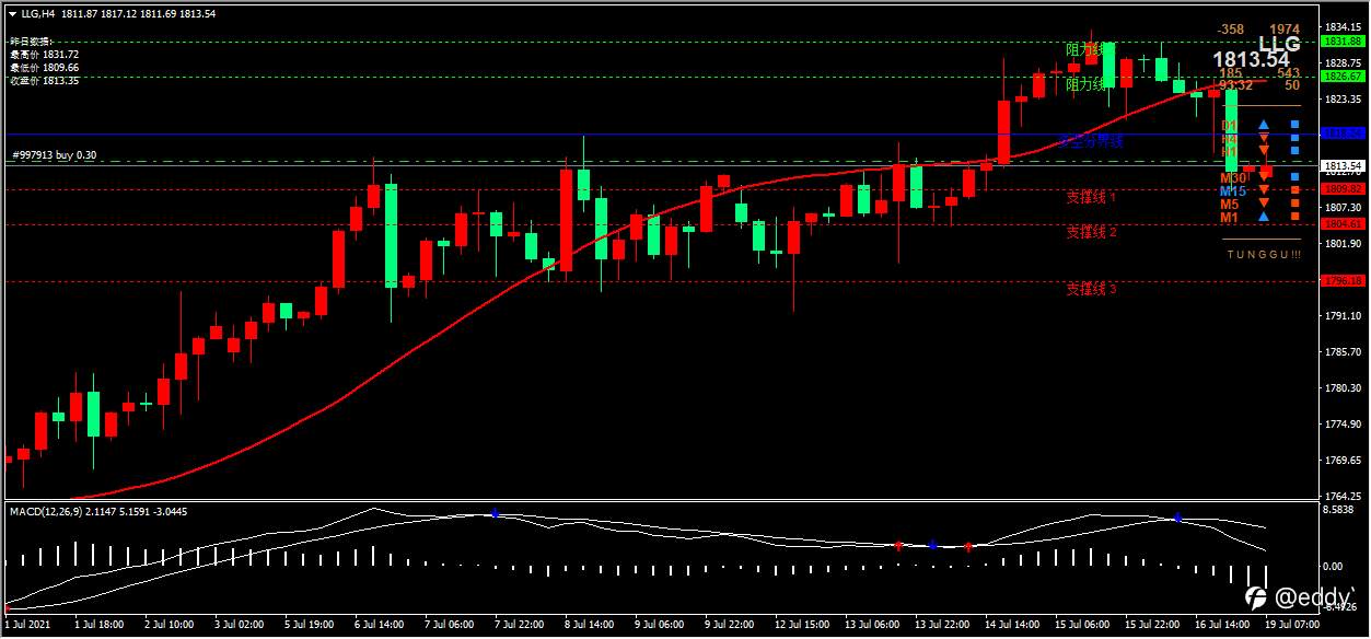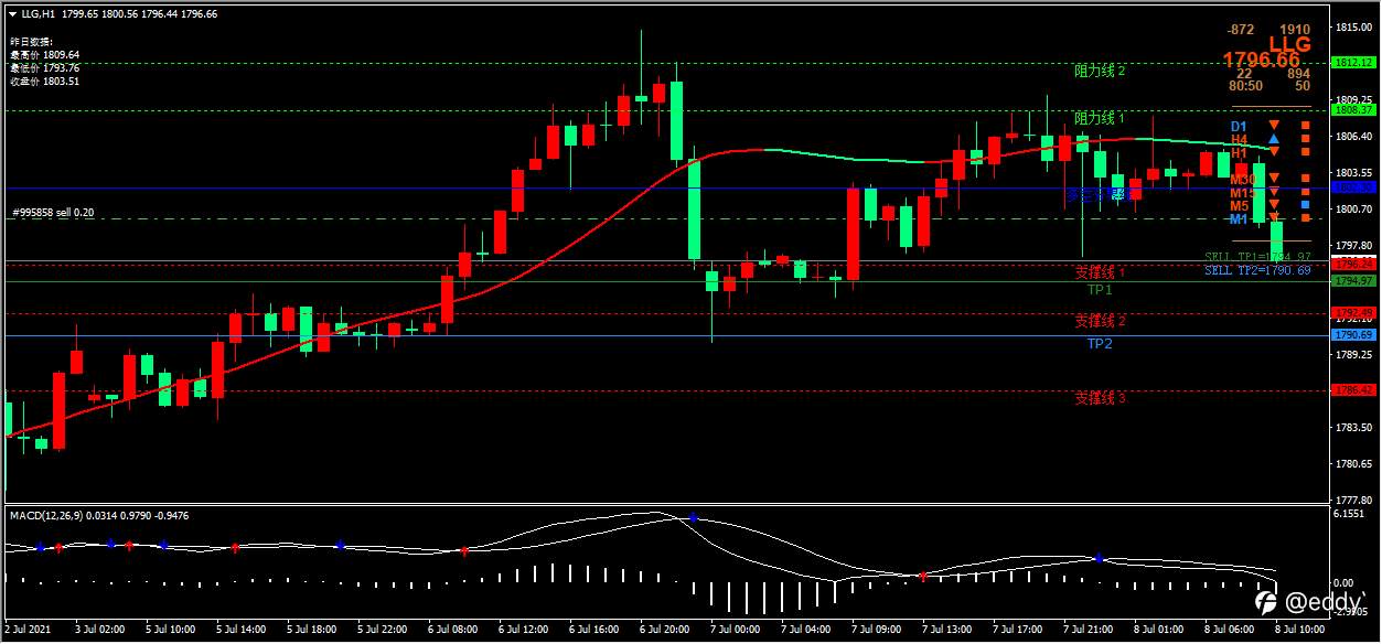 现货黄金在转折点1813之下承压看跌,留意下方支撑点1798和1792,若上探1813,则关注第一阻力1818,若继续上行可关注1823阻力。