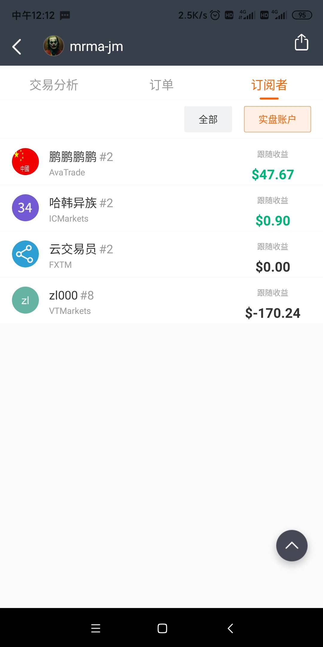 我对我的账户负责就是对你们的账户负责,我回撤我也肉疼,我利润回撤也没到你们认为的那么严重我有心理准备,只是某些订阅者认为亏的太多,26的行情走到41亏了2000多美刀我不认为我亏的多!谁不想赚#爆仓# 钱?,并不是我亏多了你们钱就进我腰包了!,你们都在各自的平台,我也没推荐,不存在刷单行为,盈利不代表没有风险,想赚钱就要知道自己的抗风险能力,上来你开1倍跟随你要知道我是整手开的就要有盈利预期和风险预期,如果不能承受风险你可以开0.5倍甚至0.1倍或者0.01倍的都可以,订阅随意并无强求,风险自担