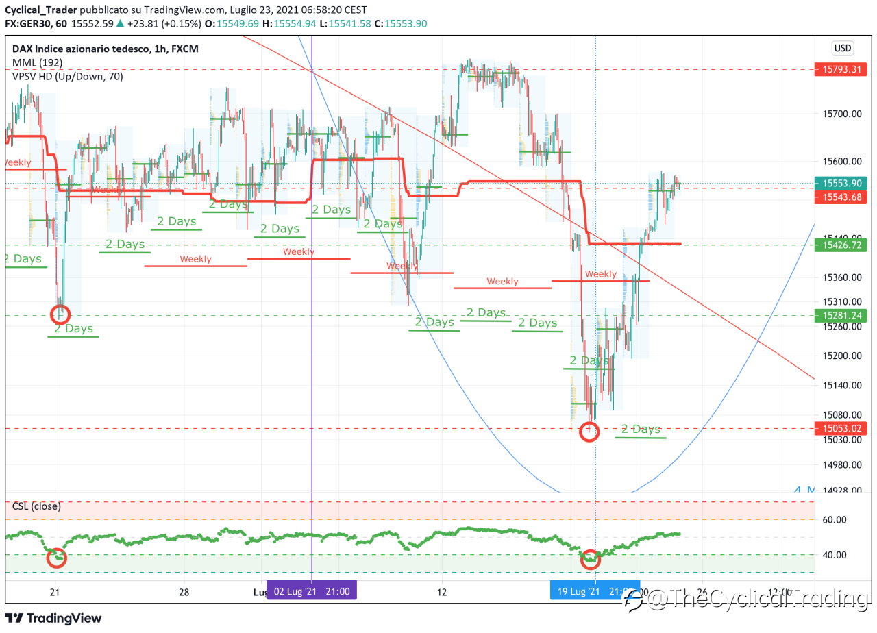 Mi attendo un proseguimento del downtrend, il CSL è neutro, dubito troveremo un eccesso dove entrare Long, magari controlleremo il grafico a 15 minuti per cercare lì un eccesso di forza dove già ieri aveva dato un fantastico segnale Long chiuso in profitto.