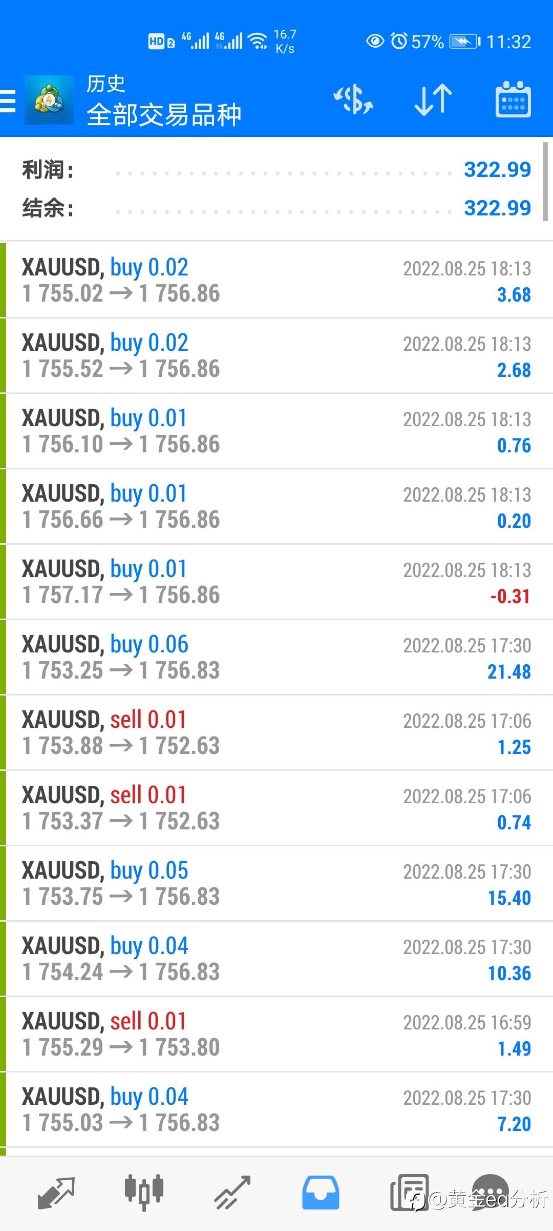 #XAU/USD#今日ea收益140美金,稳 风险提示:本文所述仅代表作者个人观点,不代表 Followme 的官方立场。Followme 不对内容的准确性、完整性或可靠性作出任何保证,对于基于该内容所采取的任何行为,不承担任何责任,除非另有书面明确说明。