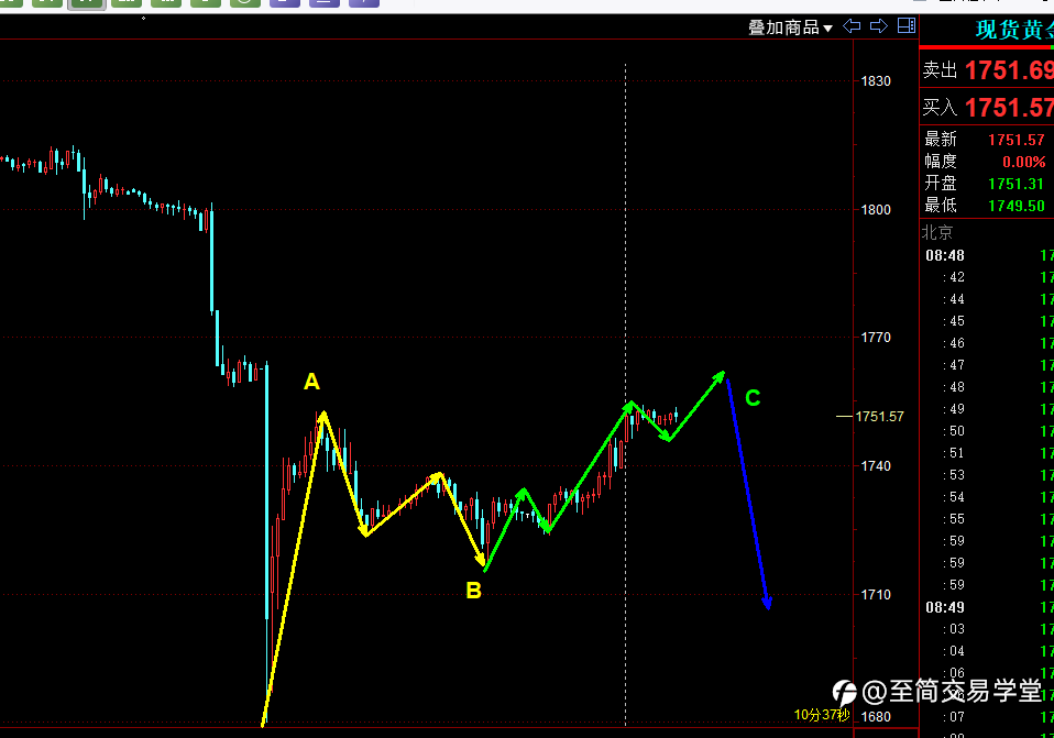 昨日已经提示的很清楚,黄金是要走上行5之后再去运行调整,那么目前行情已经来到1790的阻力位,所以结构上没有大的变动,所以还是用上面的走势图。目前行情白色方框的5浪上涨已经结束,今日的多空分水岭在1770,下破之后才能确定调整开始。