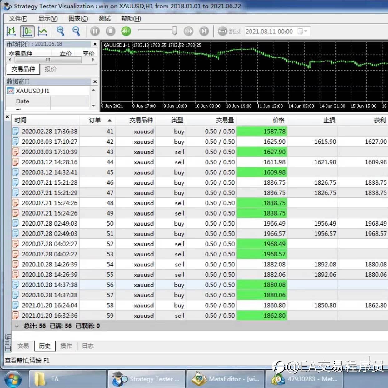 MT5 EA自动化交易 交易品种:黄金 胜负比:75比2 盈亏比:75比10 周期:三年6个月 初始资金:1000美元 风险提示:本文所述仅代表作者个人观点,不代表 Followme 的官方立场。Followme 不对内容的准确性、完整性或可靠性作出任何保证,对于基于该内容所采取的任何行为,不承担任何责任,除非另有书面明确说明。
