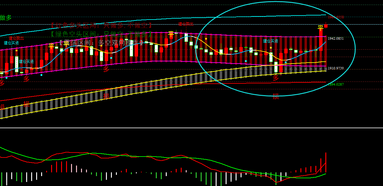 黄金:日图探底回升收出倒锤阳线,单K有一步修正到位的意思,至少1900的买盘支持了这个点,为什么这样说,昨天的美指回落并没有多少,这不足以支撑黄金反弹达到30米,相反是消息面和买盘的支撑,而技术面来看,单K只能说是有修正到位的意思,日图从系统来看还是空头,并没有完全转多,也就是说探底回升力度大了点,也就是说今天是确认这个K线的时间,因此也就是说探底回升走中继,也有一个确认的过程,看多不追多,现在支撑上移到了中轨,今天最保险位就在这里,毕竟凌晨还有美联储利率决议,所以不可盲目去追多,上方重点还是日图的上线1945一线,这里破预示着前高也会破,因为这里并没有共振压制,而四小时及小时图的共振压制在一个上线和一个加速,这里就是昨晚尾盘我们挂空的点39.5这里,早盘暂时没有走早太大的波幅,小时图还有点弱空,但是在高位运行这种容易走二次拉升,辅助指标有点背离,所以亚盘就是直接也有限,下方重点是中轴及下线这里,强支撑在中轨,因此操作上,亚盘17一线激进多,防守12,保守给13-08支撑后再多,破05出局,如果不回落直接拉升40-45压制后空,防守47.5,下看待定。(也就是说美盘前以1913-45之间做高抛吸低就可以