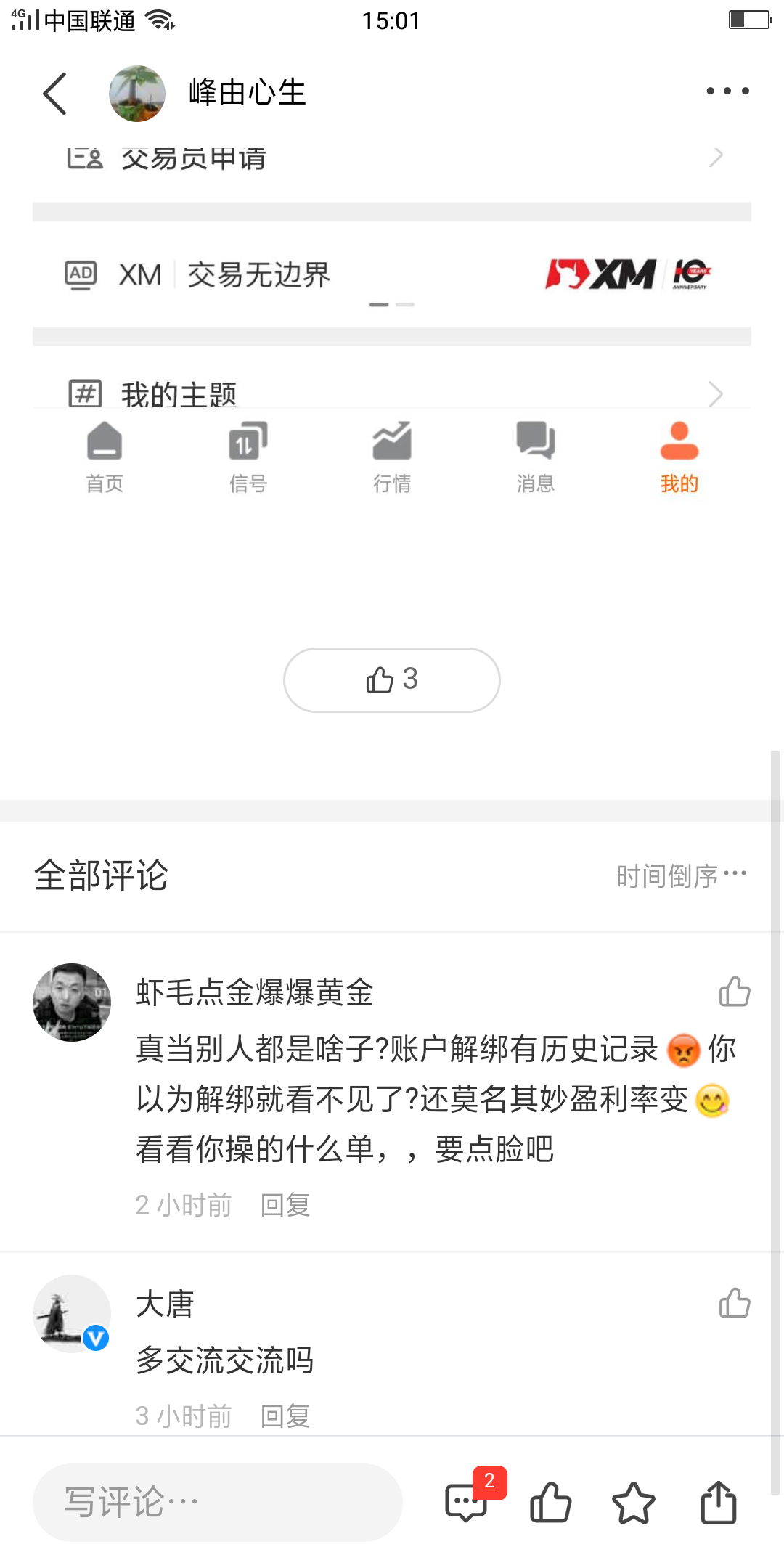 今早打开社区,突然发现张总禁止订阅了。张总说这段时间的账户是由他朋友操作的,他休息了三个月。我忍不住笑了。曾经也想过张总的账户如何收场,但未想到张总是以这种理由和这种结局。火了一把的结果是张总虽败但也赚了订阅费,只是苦了大多数跟单者,交了订阅费还亏了自己的真金白银。人都是要历练的,最后想说一句话我们共勉:所谓的暴利大师和交易圣杯是不存在的,所谓的跟单躺赚绝大多数是陷阱,在见到他人的盈利也不要眼红,在交易上自己来决定自己的盈亏还是可靠些,各自修行自己的好。