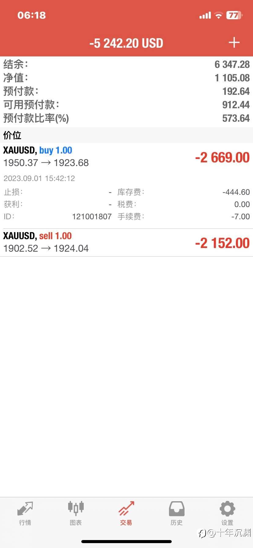 今年又快亏损2万美金了,像我这一没交易技术,二没心态,整天疯疯魔魔,非得用马丁格尔策略,要么死,要么活;周四黄金跌到1745.30点,我竟然撑不住了,我竟然在1745.46点锁仓了,昨天一天气的差点没把自己憋死! 风险提示:本文所述仅代表作者个人观点,不代表 Followme 的官方立场。Followme 不对内容的准确性、完整性或可靠性作出任何保证,对于基于该内容所采取的任何行为,不承担任何责任,除非另有书面明确说明。