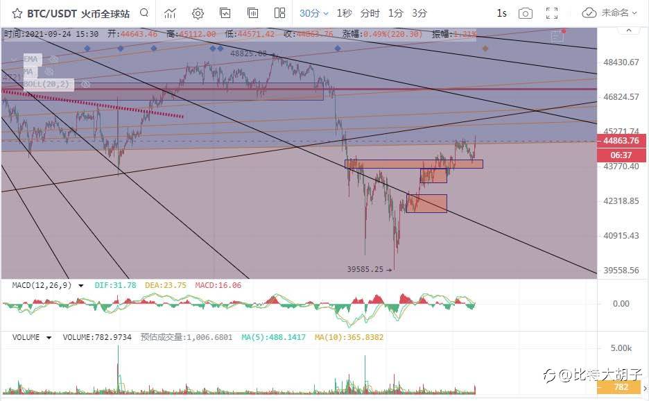 这里四小时上面kdj反馈上面会成为一个假象,前面也说过破位上方43300到700一线区间以后再去进场多单较为稳妥,四小时上面的偏向还是会先去做底背出来供应上涨