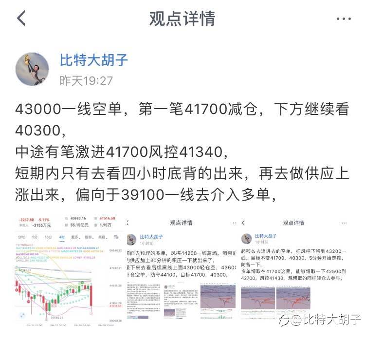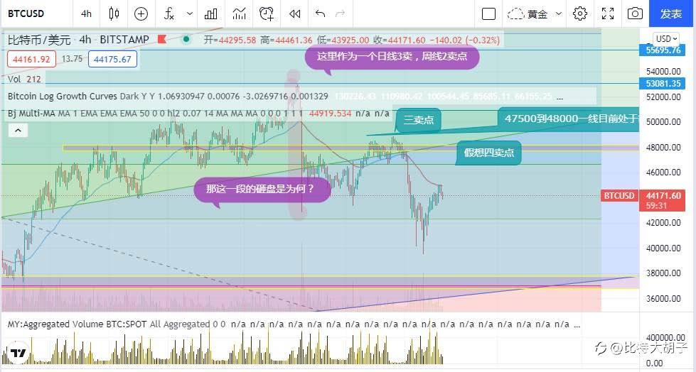 #BTC/USD# 昨天去进取的多单,已经到达第一目标位置44200,减仓百分之五十离场,下个目标做下调整,45600为下一目标,全部离场,风控上移到43200,