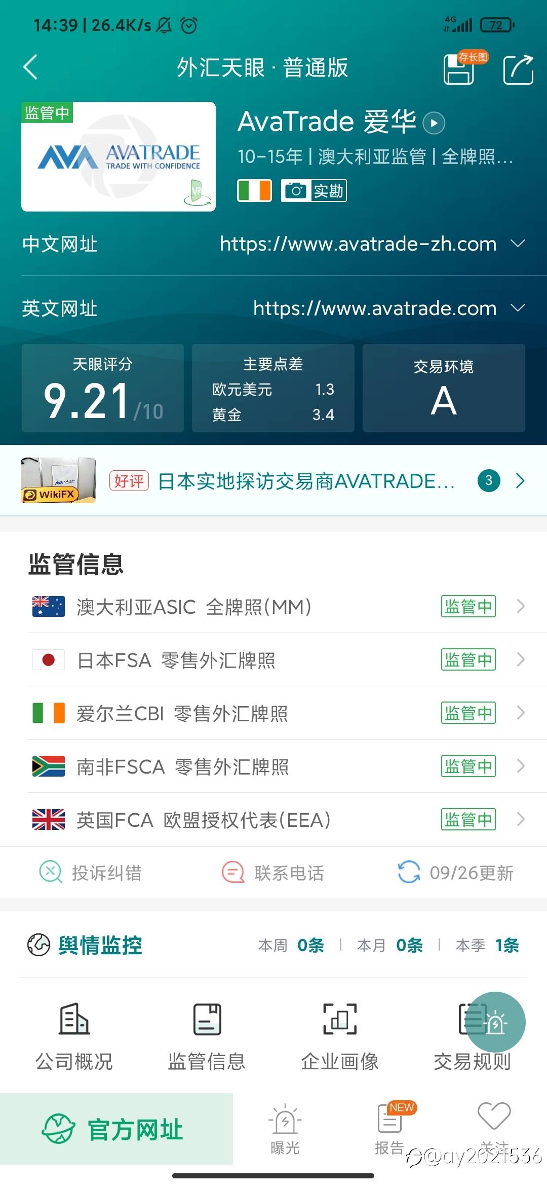 最近活动力度很大的一家交易商,肯舍得花钱推广的一家交易商!1.五国监管,安全力度很大!天眼上评分很高!资金安全有保障!2.交易成本可以和代理谈返佣将交易成本降低下来,因为总体交易点差不低,如下图。主流交易品种的隔夜费很低,比较适合中线持仓,如下图!3.短线交易容易受到数据时间的冲击而造成短暂的卡盘。且滑点现在是有的,正向的,负向的,都有!所以已经免疫了!4.客服态度没得说,一对一的客户经理,有任何事情,都能找到人,这点很赞!5.入金是立即到账,出金3个工作日内到账,还是很给力的!推荐爱华!