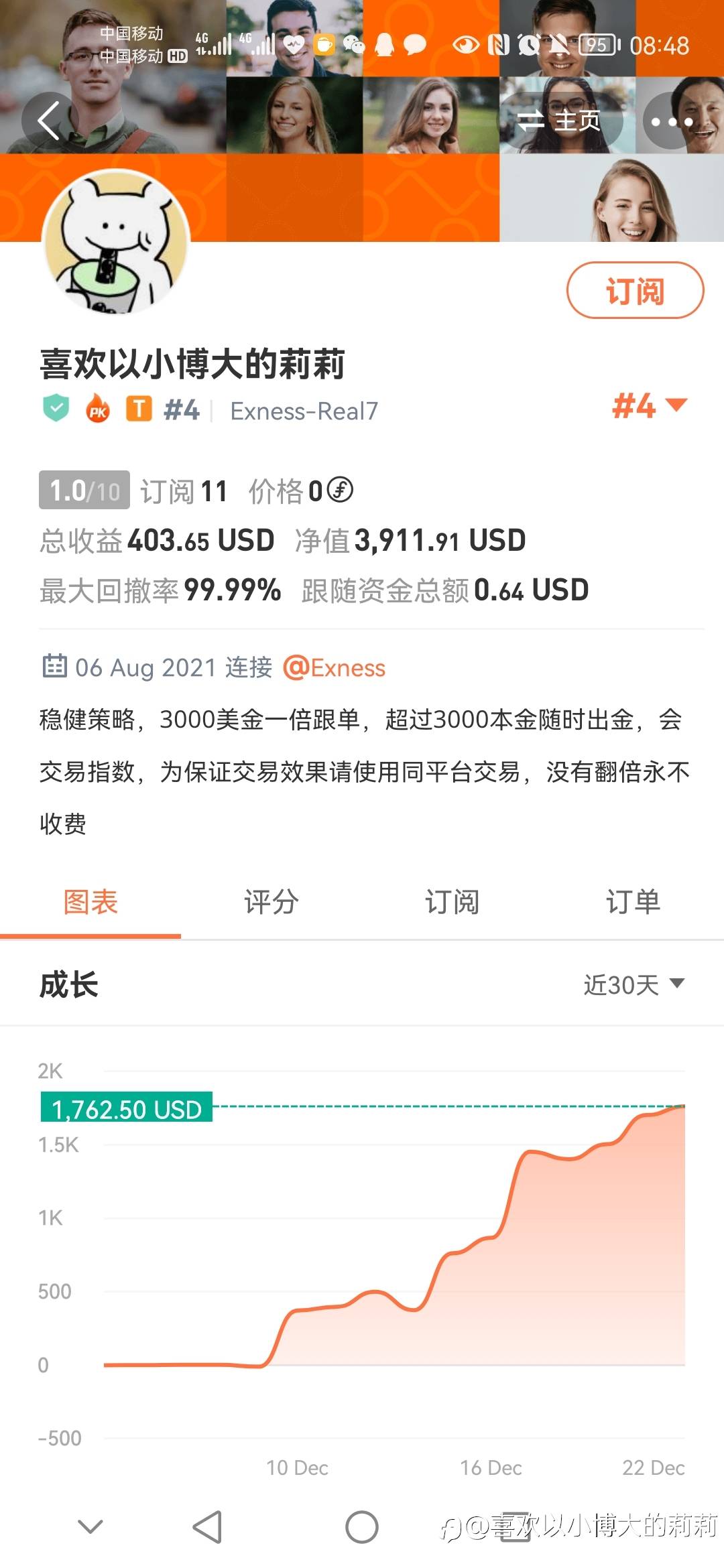 这几天帮几个汇友看了盘,个个都是破财,没钱的运,只有复利女神的财运最好,看起来运势很重要啊😂😂 风险提示:本文所述仅代表作者个人观点,不代表 Followme 的官方立场。Followme 不对内容的准确性、完整性或可靠性作出任何保证,对于基于该内容所采取的任何行为,不承担任何责任,除非另有书面明确说明。