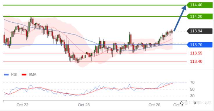 在 113.70 之上,看涨,目标价为 TP1: 114.20 , TP2: 114.40