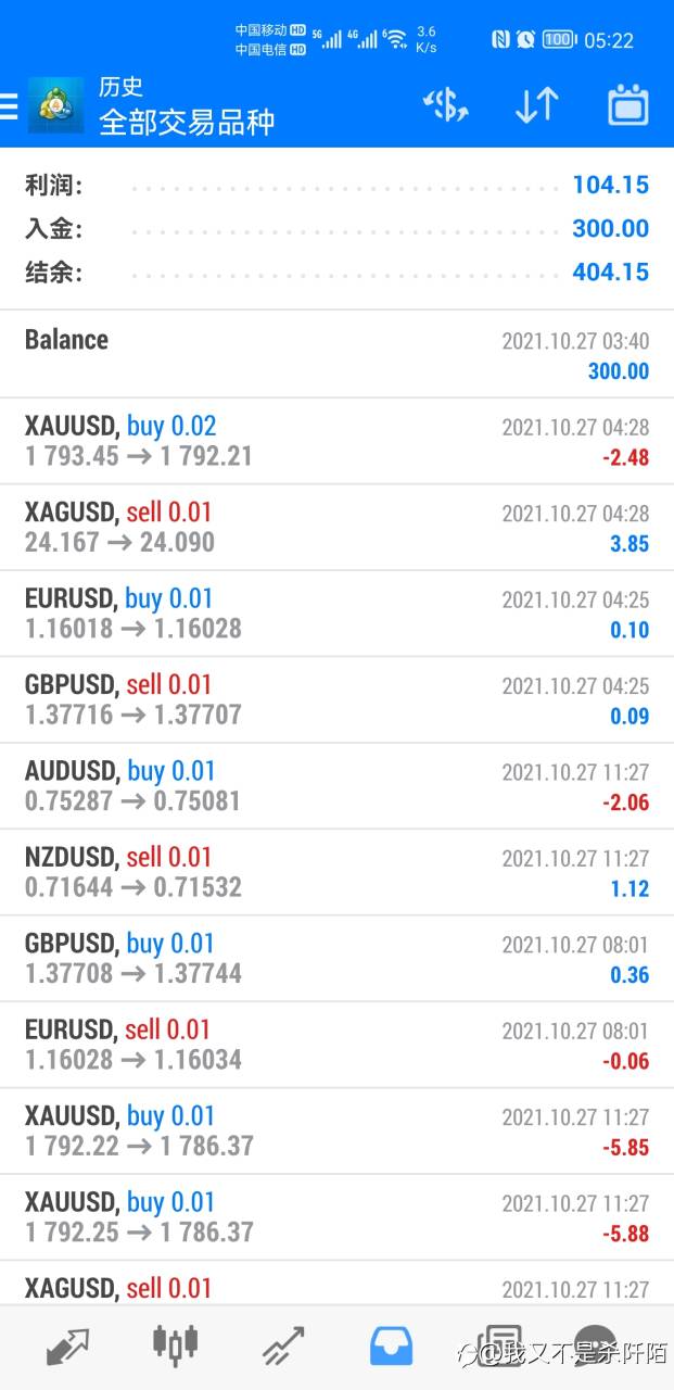 放个自动止盈的EA,好久没用了,设置参数错误导致错误平仓,今晚到手的利润损失了一半,伤心 风险提示:本文所述仅代表作者个人观点,不代表 Followme 的官方立场。Followme 不对内容的准确性、完整性或可靠性作出任何保证,对于基于该内容所采取的任何行为,不承担任何责任,除非另有书面明确说明。