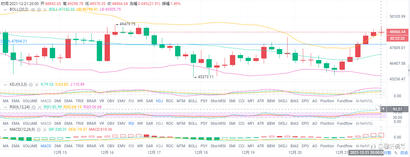日内白盘也给出以太坊整体4800-4600这个区间震荡整盘成功也站稳上方三角区间的上沿,在之前的拉升行情之中,日线级别的周期永远都是不断的在进行一个空头的缩量,而多头是不断的趋近于一种放量的状态,在十二月初的日线是刚刚的才进行一个完整放量的过程,所以回调的程度一定不会很深。当我们找到方向后,对于目前我们交易的重心我个人建议大家可以适当的转移到以太上来,并且以波段操作为主,在波段交易中去尝试抓住趋势的节奏来利润最大化,晚间将会走出一个震荡下行的的走势,在震荡到底部大概4600-4550附近的位置,在进行一波冲高,再一次的冲破4800这个位置,所以就目前的行情来看这种走势是唯一的,意外情况就是庄家直接操盘让行情直接直线拉升。突破4800,首先4800突破都只是时间的问题,只是看4800突破之后这么一个W底的形态能否突破上次的4855附近的高点,再次创造一个短期的新高。#比特币会不会在2021年以后崩盘?#