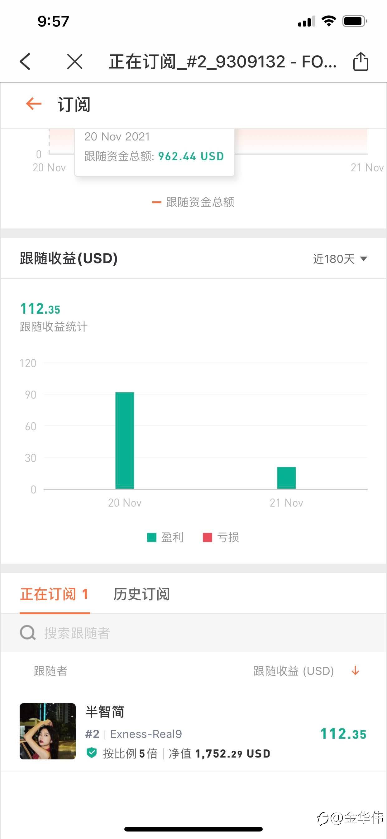 一周的利润,目标100000USD。边赚钱边出金可还行,开了订阅保障,小资金都可以跟。 风险提示:本文所述仅代表作者个人观点,不代表 Followme 的官方立场。Followme 不对内容的准确性、完整性或可靠性作出任何保证,对于基于该内容所采取的任何行为,不承担任何责任,除非另有书面明确说明。