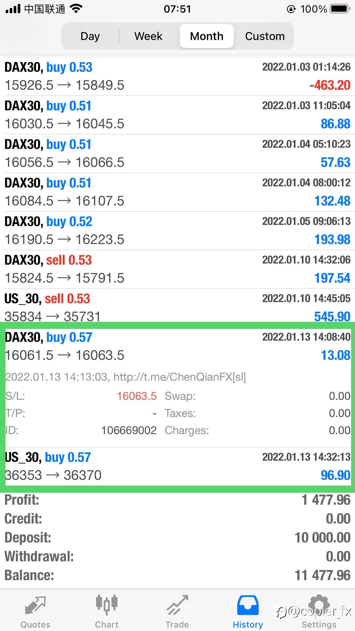 2021年12月28日 平仓获利$294.8,较上一交易日增长2.82% 一策一单,精准点位,低仓位无风险。 风险提示:本文所述仅代表作者个人观点,不代表 Followme 的官方立场。Followme 不对内容的准确性、完整性或可靠性作出任何保证,对于基于该内容所采取的任何行为,不承担任何责任,除非另有书面明确说明。