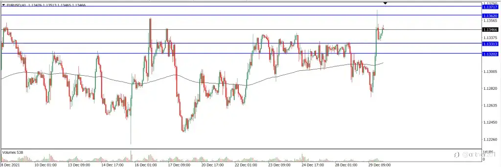 bila harga close candle 1 Jam menembus Batas Atas Resistance Area (1.1372), maka bersiap mencari posisi Entry buy terbaik.