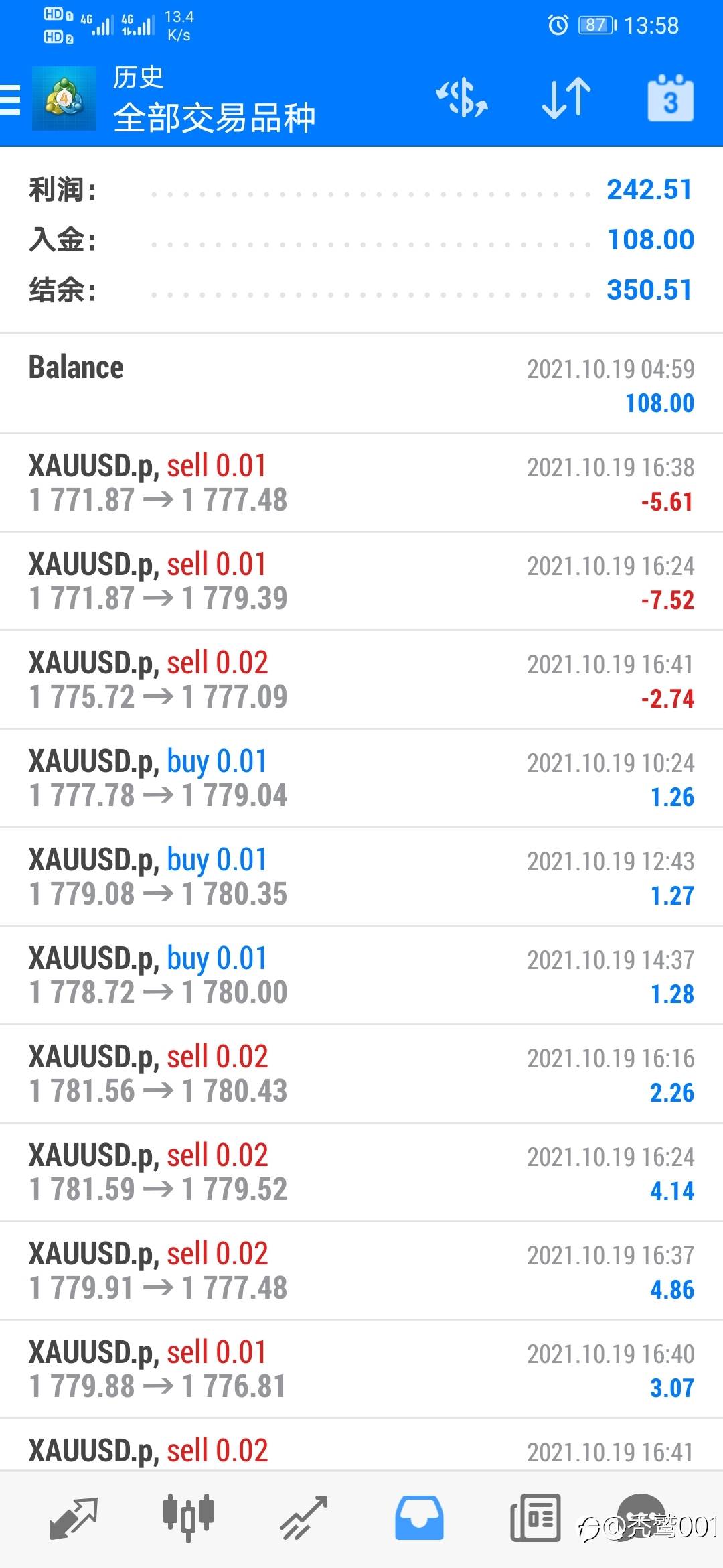 接下来,每天的收益在20-60之间,复利上,3个月余额到5000 风险提示:本文所述仅代表作者个人观点,不代表 Followme 的官方立场。Followme 不对内容的准确性、完整性或可靠性作出任何保证,对于基于该内容所采取的任何行为,不承担任何责任,除非另有书面明确说明。