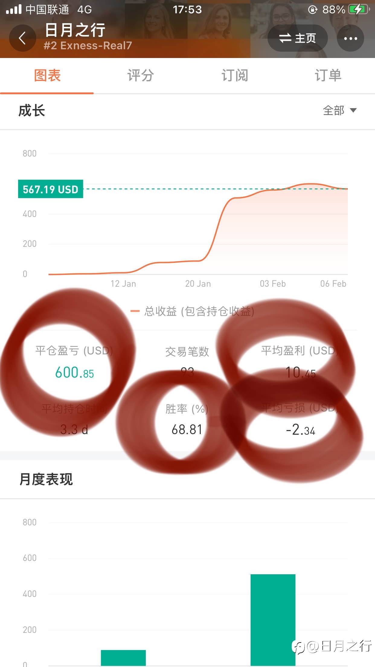 1月12号入金2000刀, 目前平仓盈利600刀, 平均盈利10.45刀, 平均亏损-2.35刀, 胜率68.8%, 已出金507刀, 我时刻提醒自己切勿骄傲,保持一颗平常心,做外汇近20年,初来社区接入信号,各位前辈大佬多多包涵[抱拳][抱拳][抱拳] 风险提示:本文所述仅代表作者个人观点,不代表 Followme 的官方立场。Followme 不对内容的准确性、完整性或可靠性作出任何保证,对于基于该内容所采取的任何行为,不承担任何责任,除非另有书面明确说明。
