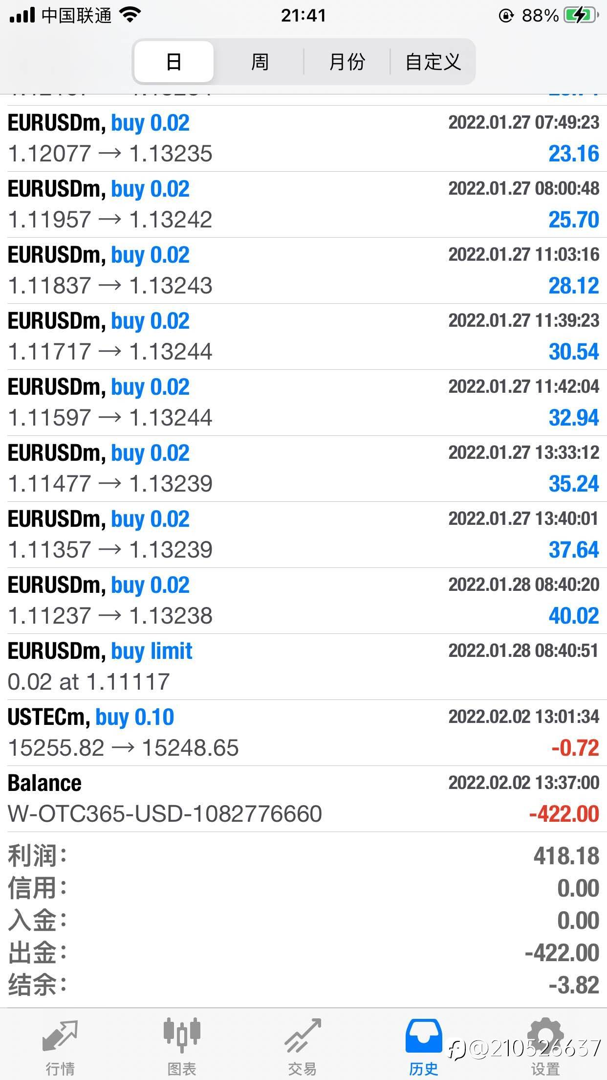 多年经验告诉我的:平台是假的,金钱数字是飘渺的,外汇涨跌是不存在的,只有出金并且花掉才瞬间快乐一下。( 昨天再小出金一次) 风险提示:本文所述仅代表作者个人观点,不代表 Followme 的官方立场。Followme 不对内容的准确性、完整性或可靠性作出任何保证,对于基于该内容所采取的任何行为,不承担任何责任,除非另有书面明确说明。