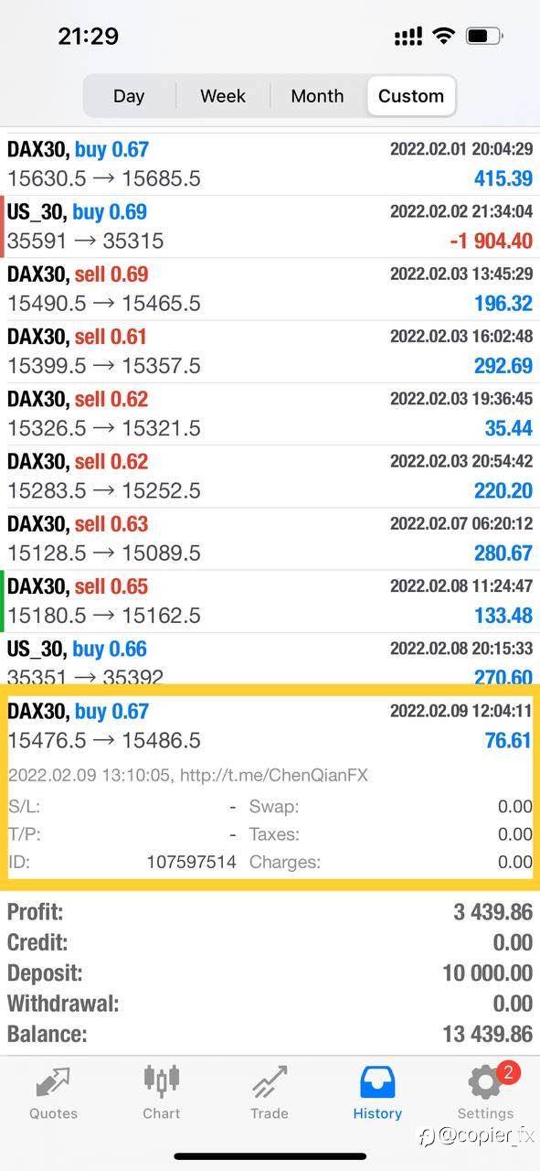 2022年02月08日 平仓获利$390.46,较上一交易日增长3.01% 一策一单,低仓位低风险,月收益50%,最大回撤25%以内。 风险提示:本文所述仅代表作者个人观点,不代表 Followme 的官方立场。Followme 不对内容的准确性、完整性或可靠性作出任何保证,对于基于该内容所采取的任何行为,不承担任何责任,除非另有书面明确说明。
