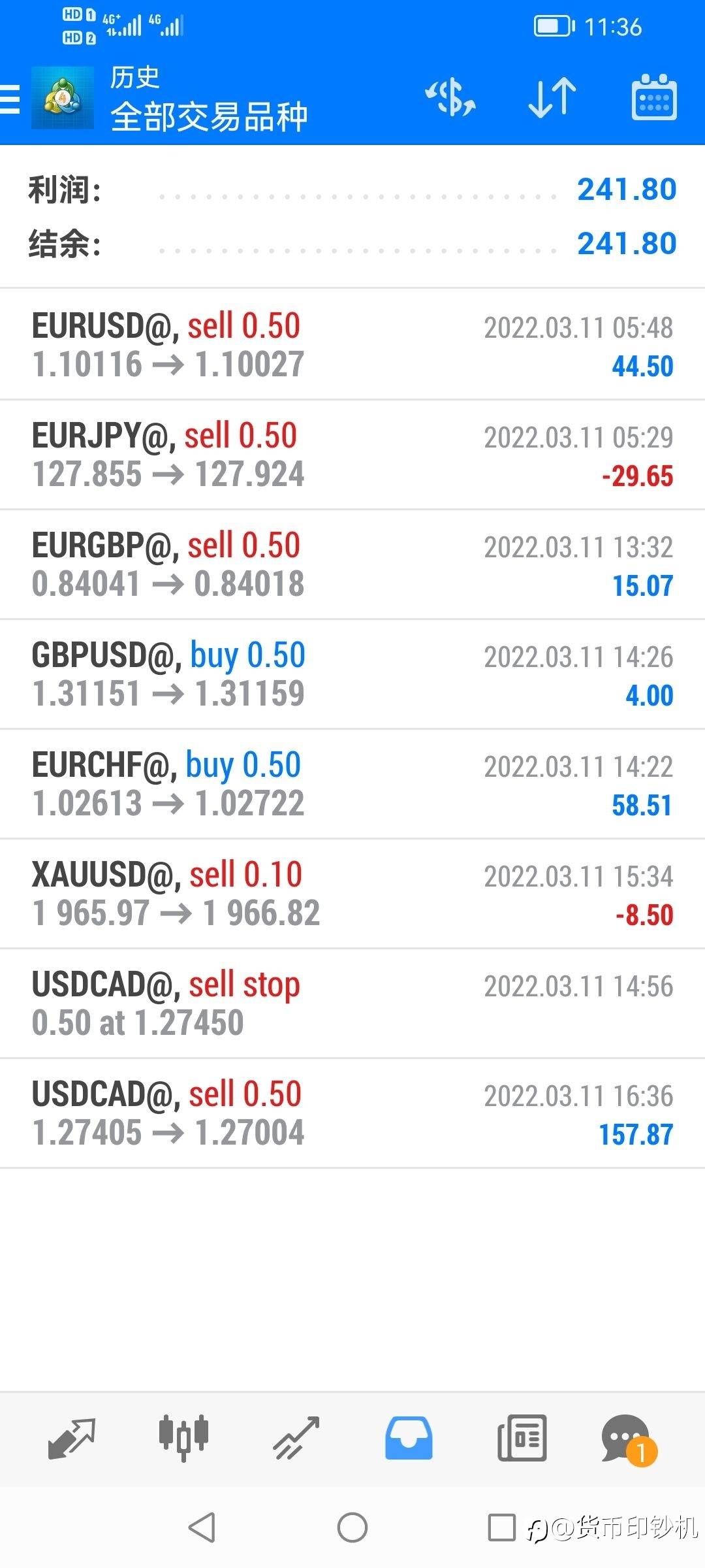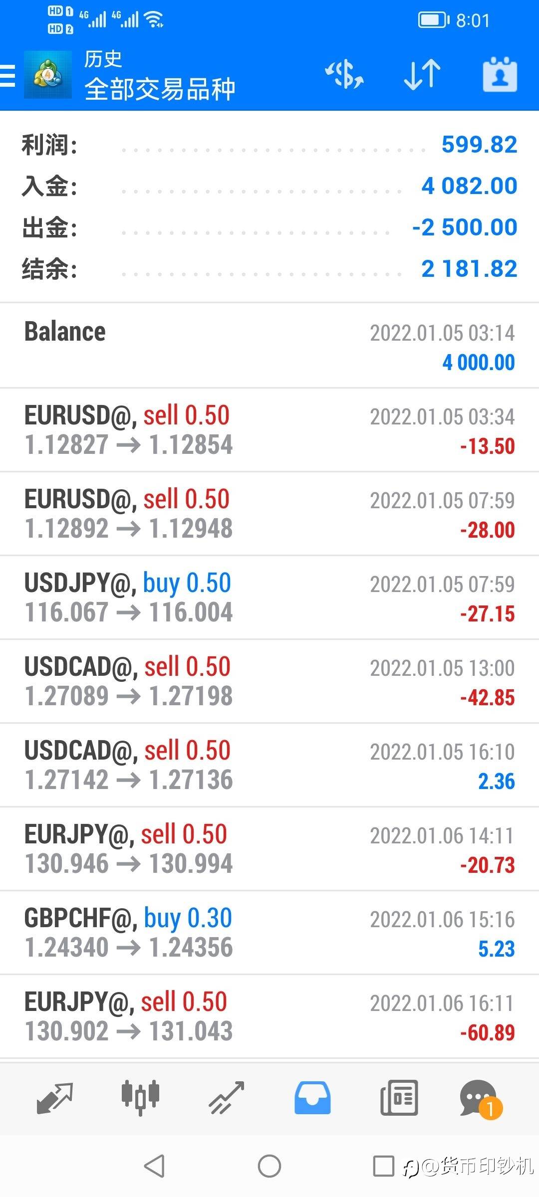 1月5号入4000美金,出1900美金,交易130手左右🙏 风险提示:本文所述仅代表作者个人观点,不代表 Followme 的官方立场。Followme 不对内容的准确性、完整性或可靠性作出任何保证,对于基于该内容所采取的任何行为,不承担任何责任,除非另有书面明确说明。