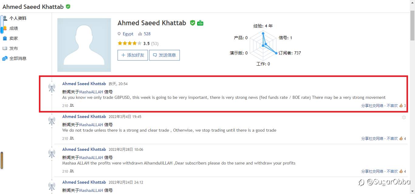 罗克萨斯用MQL5的信号来FM卖钱,平台不管管?人家33刀一个月的信号,罗克萨斯二道贩子卖68刀,连人家信号主的动态都复制了,脸都不要了😡 风险提示:本文所述仅代表作者个人观点,不代表 Followme 的官方立场。Followme 不对内容的准确性、完整性或可靠性作出任何保证,对于基于该内容所采取的任何行为,不承担任何责任,除非另有书面明确说明。