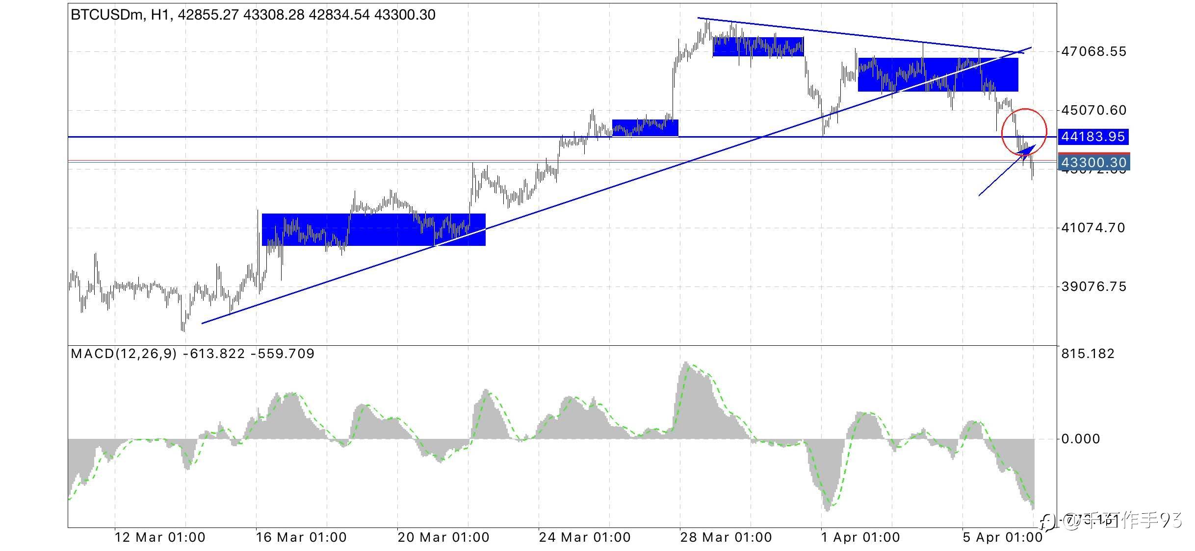 比特币小时周期图从44200破位下跌之后,再从第二个下跌平台下来目前跌幅5000美元,小时线内部结构趋势背驰段中。可以静待macd回抽零轴,再一次下跌背驰埋伏多头。 风险提示:本文所述仅代表作者个人观点,不代表 Followme 的官方立场。Followme 不对内容的准确性、完整性或可靠性作出任何保证,对于基于该内容所采取的任何行为,不承担任何责任,除非另有书面明确说明。