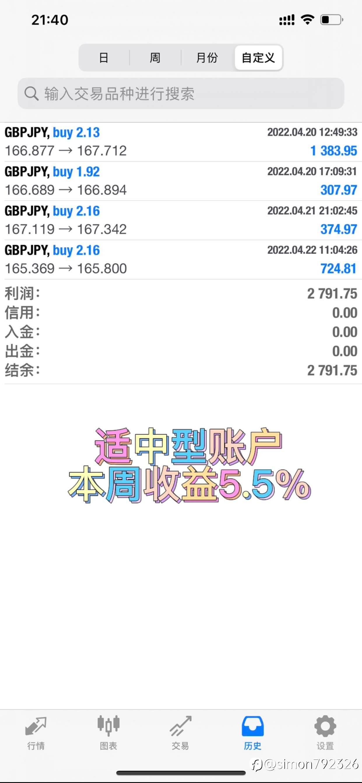 5万美金,适中型账户 4.1-4.25总收益4416美金 收益8.8%,回撤0% 专注榜日交易 欢迎一起交流学习🙂 风险提示:本文所述仅代表作者个人观点,不代表 Followme 的官方立场。Followme 不对内容的准确性、完整性或可靠性作出任何保证,对于基于该内容所采取的任何行为,不承担任何责任,除非另有书面明确说明。
