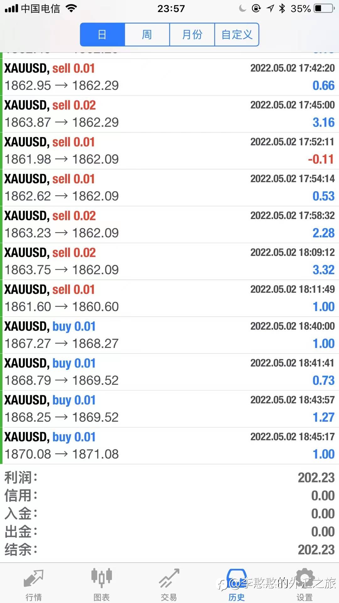 慢涨30美金的行情,145有所套单,加上周五,因此回调止损离场。今日027获利154.22美金,026获利40.78美金,145亏损264.64美金! 偶有回撤亏损,但不影响长期盈利! 风险提示:本文所述仅代表作者个人观点,不代表 Followme 的官方立场。Followme 不对内容的准确性、完整性或可靠性作出任何保证,对于基于该内容所采取的任何行为,不承担任何责任,除非另有书面明确说明。