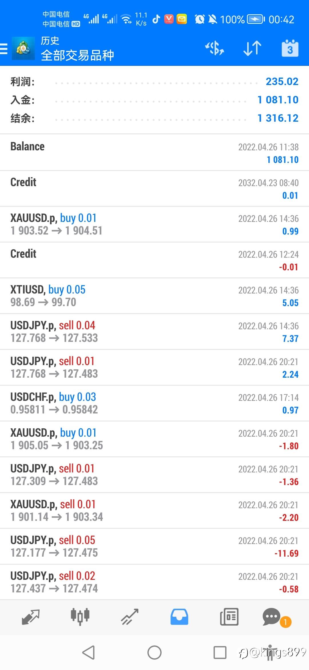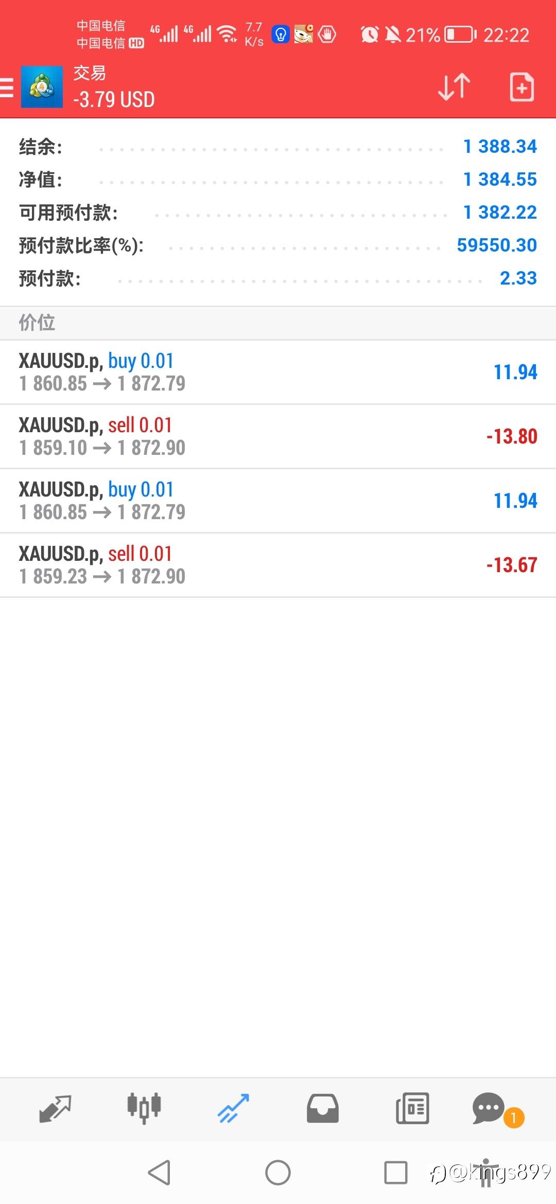 昨天亏损115美金还差点 风险提示:本文所述仅代表作者个人观点,不代表 Followme 的官方立场。Followme 不对内容的准确性、完整性或可靠性作出任何保证,对于基于该内容所采取的任何行为,不承担任何责任,除非另有书面明确说明。
