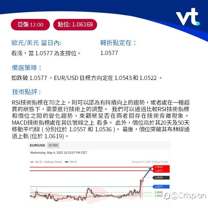 欧元/美元下跌53点,至1.0504。德国官方数据显示,4月份消费者价格同比上涨7.4%(如预期)。