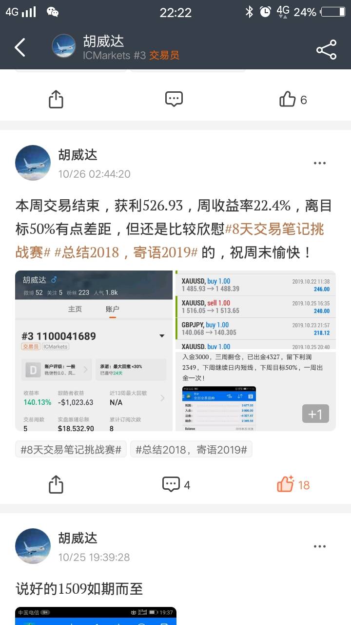 100美金8天时间最高13005美刀 死在利率决议上 心里不会气馁 在100美刀搞起来,@抢劫华尔街银行带你飞了!想跟单吃肉肉的来跟我的20号账户,这个是@抢劫华尔街银行的账户 风险提示:本文所述仅代表作者个人观点,不代表 Followme 的官方立场。Followme 不对内容的准确性、完整性或可靠性作出任何保证,对于基于该内容所采取的任何行为,不承担任何责任,除非另有书面明确说明。